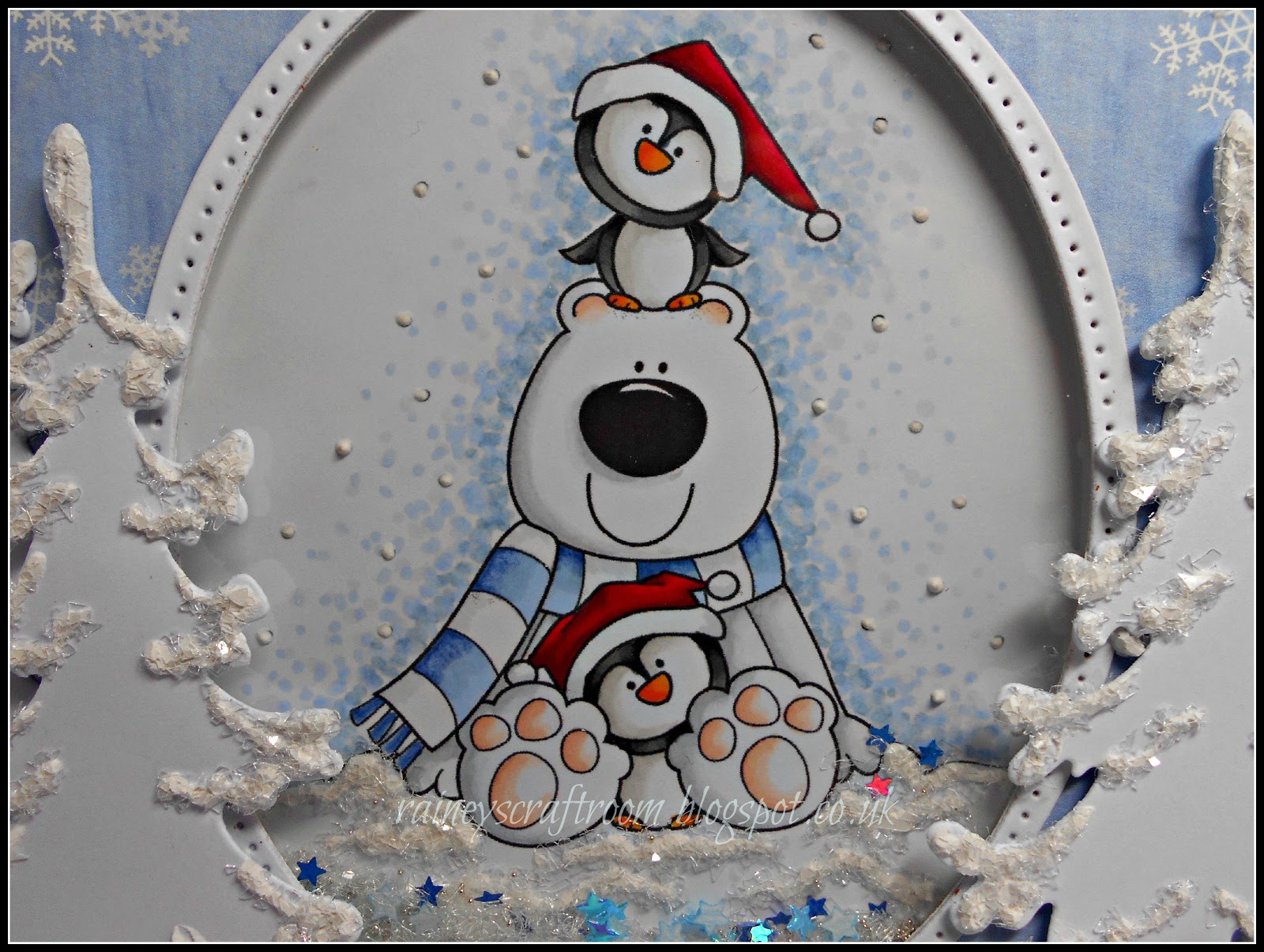 Talking of which... this is my shaker card for my first challenge on the team. We are sponsored by Stamp & Create for our challenge of 'W' is for Wild Thing ... and here are my very wild Polar Bear and Penguins, he, he.