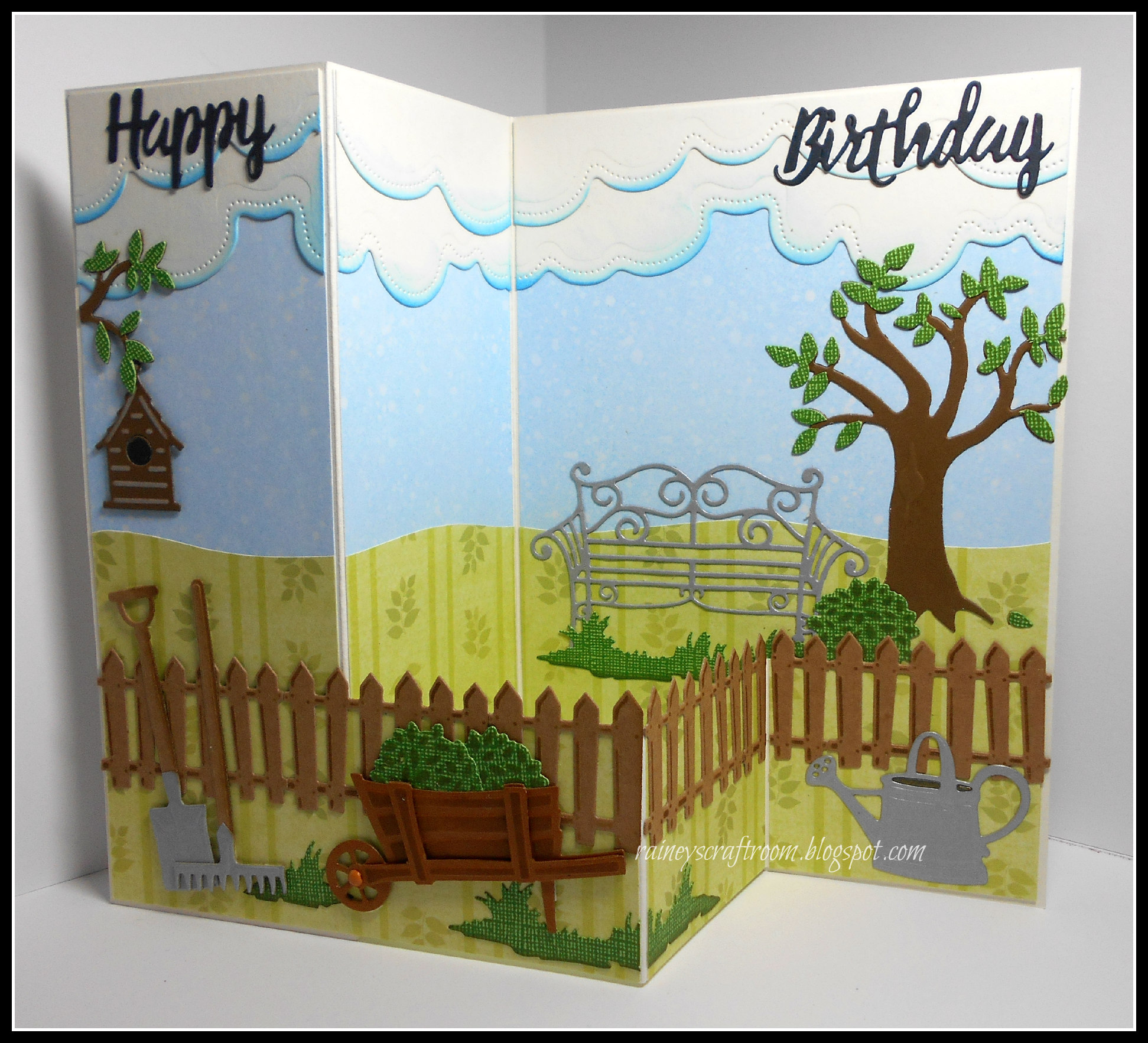 I have made a double 'Z' fold card to create my garden scene.